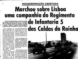 A coluna sai comandada pelo capitão Ramos que vai de Lisboa com essa incumbência, que segundo ele lhe foi dada ou assinada por baixo por Otelo ( o Saldanha moderno) e lá marcharam heróicos por ali abaixo, num aventura enganosa, com o suposto objectivo de derrubarem o governo, segundo a luminosidade do general Spinola, sem populaça e confusões.